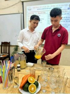 Lớp hướng nghiệp pha chế dành cho các em học sinh khuy    ết tật trí tuệ tại Trường Tiểu học Bình Minh.